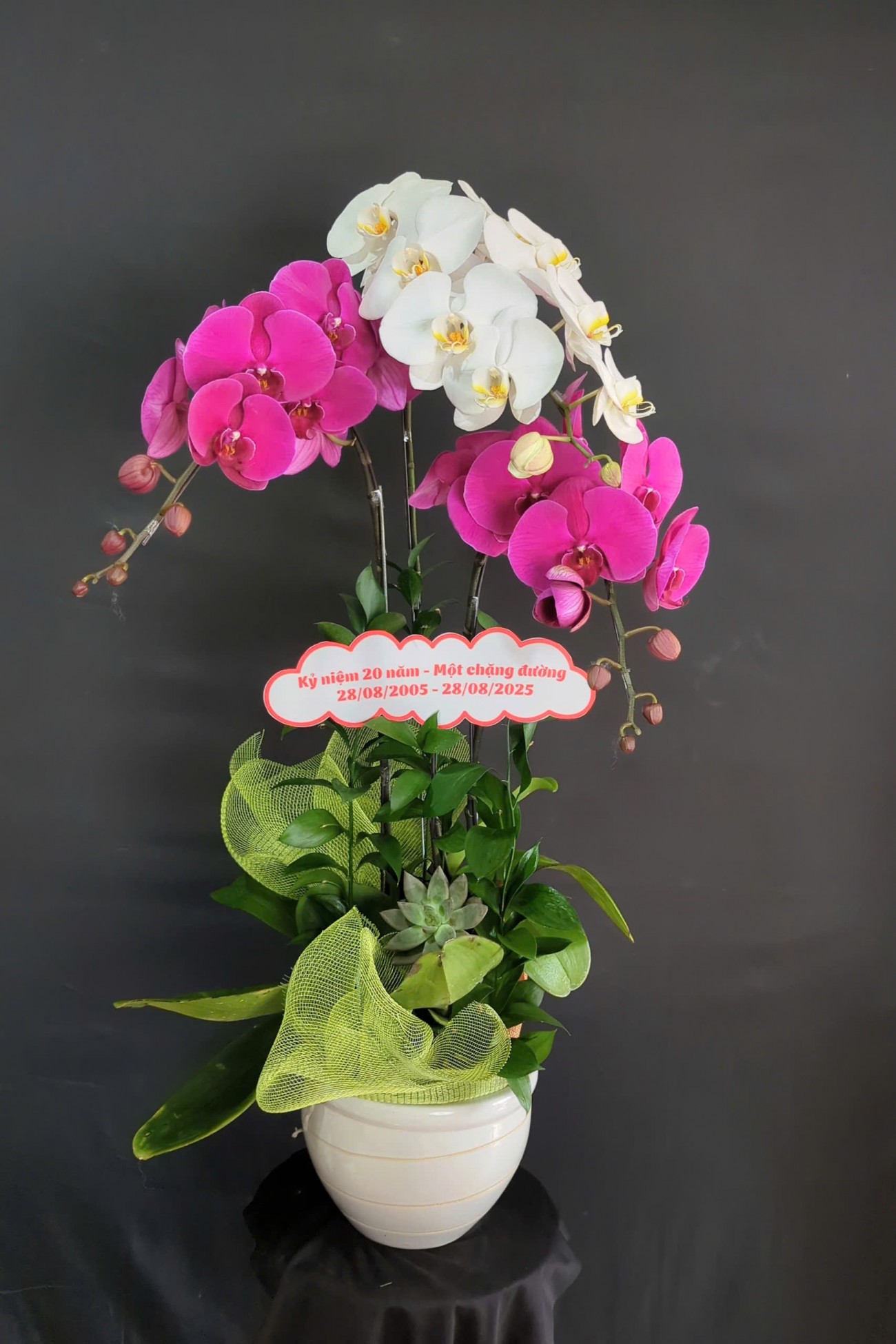Mỗi nghệ nhân cắm hoa sẽ tạo ra các mẫu hoa khác nhau, không hoàn toàn giống nhau 100% và có độ tùy biến đôi chút, hoalantacpham.com cam kết đảm bảo tầm 90%-95% như mẫu cho quý khách hàng (100% sản phẩm hoa lan từ người dân làng hoa Lâm Đồng)