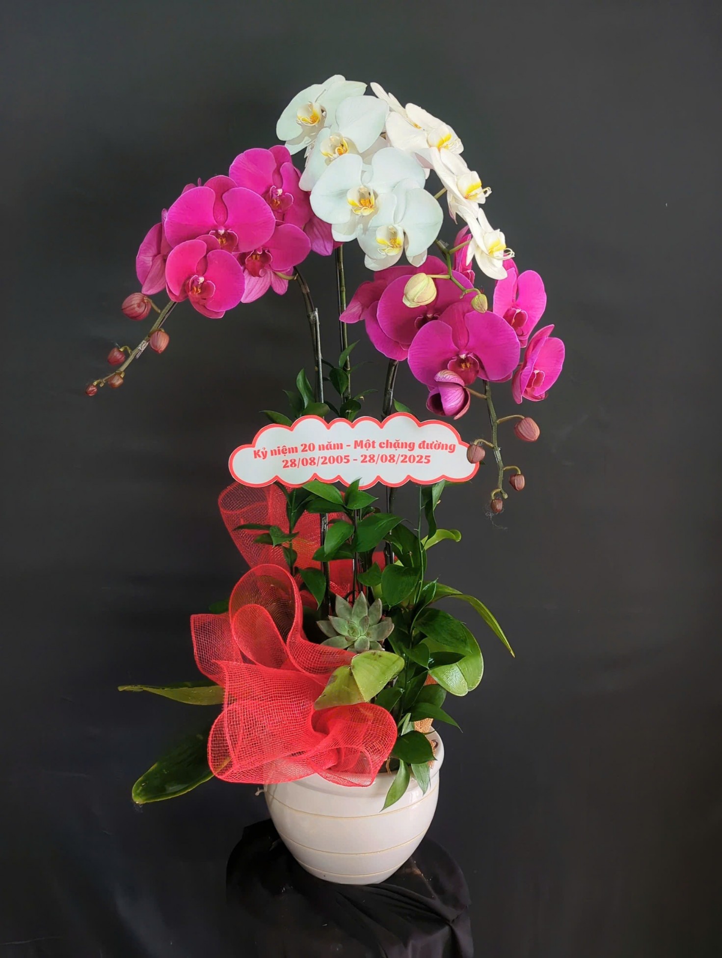 Chậu lan hồ điệp trắng phối đỏ ớt