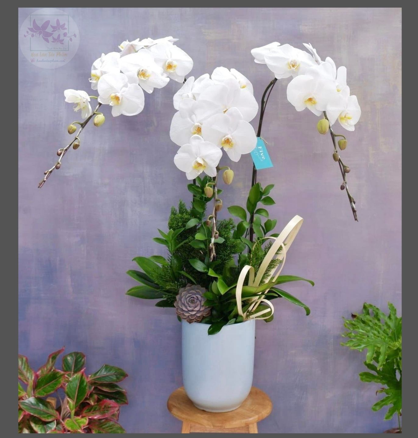 Mỗi nghệ nhân cắm hoa sẽ tạo ra các mẫu hoa khác nhau, không hoàn toàn giống nhau 100% và có độ tùy biến đôi chút, hoalantacpham.com cam kết đảm bảo tầm 90%-95% như mẫu cho quý khách hàng (100% sản phẩm hoa lan từ người dân làng hoa Lâm Đồng)