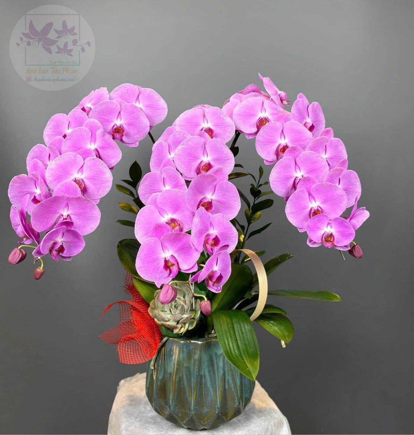Mỗi nghệ nhân cắm hoa sẽ tạo ra các mẫu hoa khác nhau, không hoàn toàn giống nhau 100% và có độ tùy biến đôi chút, hoalantacpham.com cam kết đảm bảo tầm 90%-95% như mẫu cho quý khách hàng (100% sản phẩm hoa lan từ người dân làng hoa Lâm Đồng)