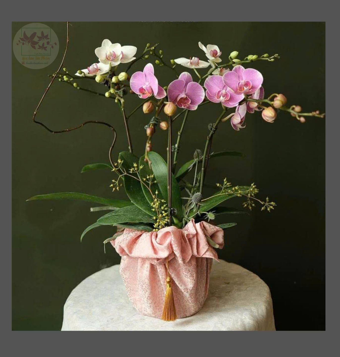 Mỗi nghệ nhân cắm hoa sẽ tạo ra các mẫu hoa khác nhau, không hoàn toàn giống nhau 100% và có độ tùy biến đôi chút, hoalantacpham.com cam kết đảm bảo tầm 90%-95% như mẫu cho quý khách hàng (100% sản phẩm hoa lan từ người dân làng hoa Lâm Đồng)