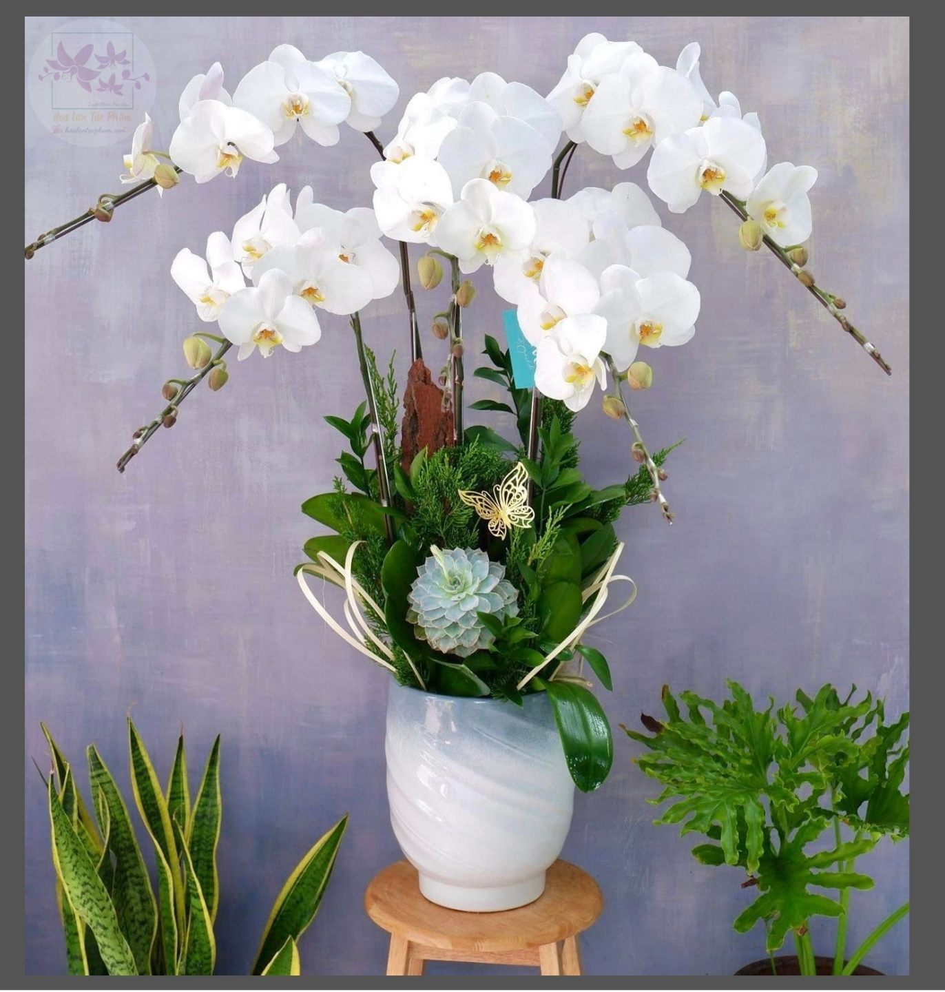 Mỗi nghệ nhân cắm hoa sẽ tạo ra các mẫu hoa khác nhau, không hoàn toàn giống nhau 100% và có độ tùy biến đôi chút, hoalantacpham.com cam kết đảm bảo tầm 90%-95% như mẫu cho quý khách hàng (100% sản phẩm hoa lan từ người dân làng hoa Lâm Đồng)