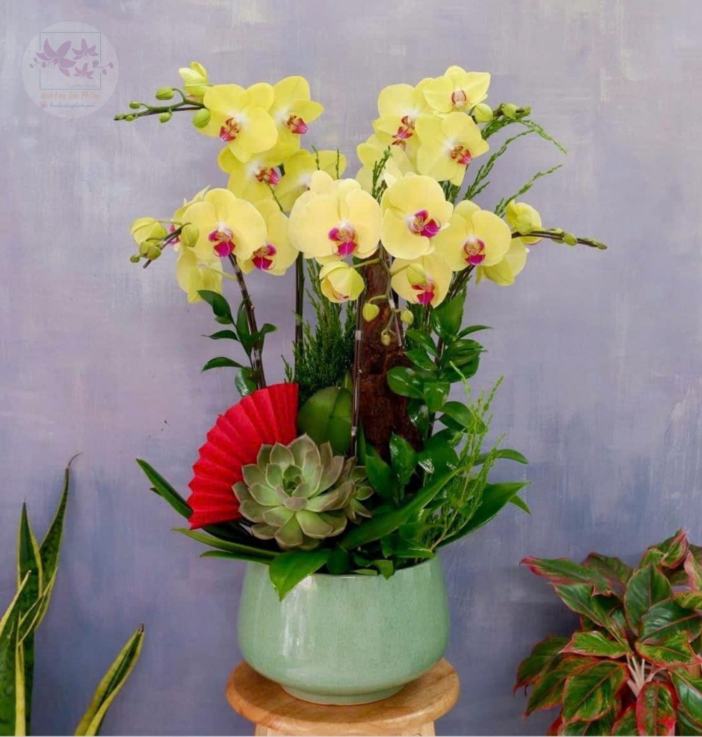 Mỗi nghệ nhân cắm hoa sẽ tạo ra các mẫu hoa khác nhau, không hoàn toàn giống nhau 100% và có độ tùy biến đôi chút, hoalantacpham.com cam kết đảm bảo tầm 90%-95% như mẫu cho quý khách hàng (100% sản phẩm hoa lan từ người dân làng hoa Lâm Đồng)