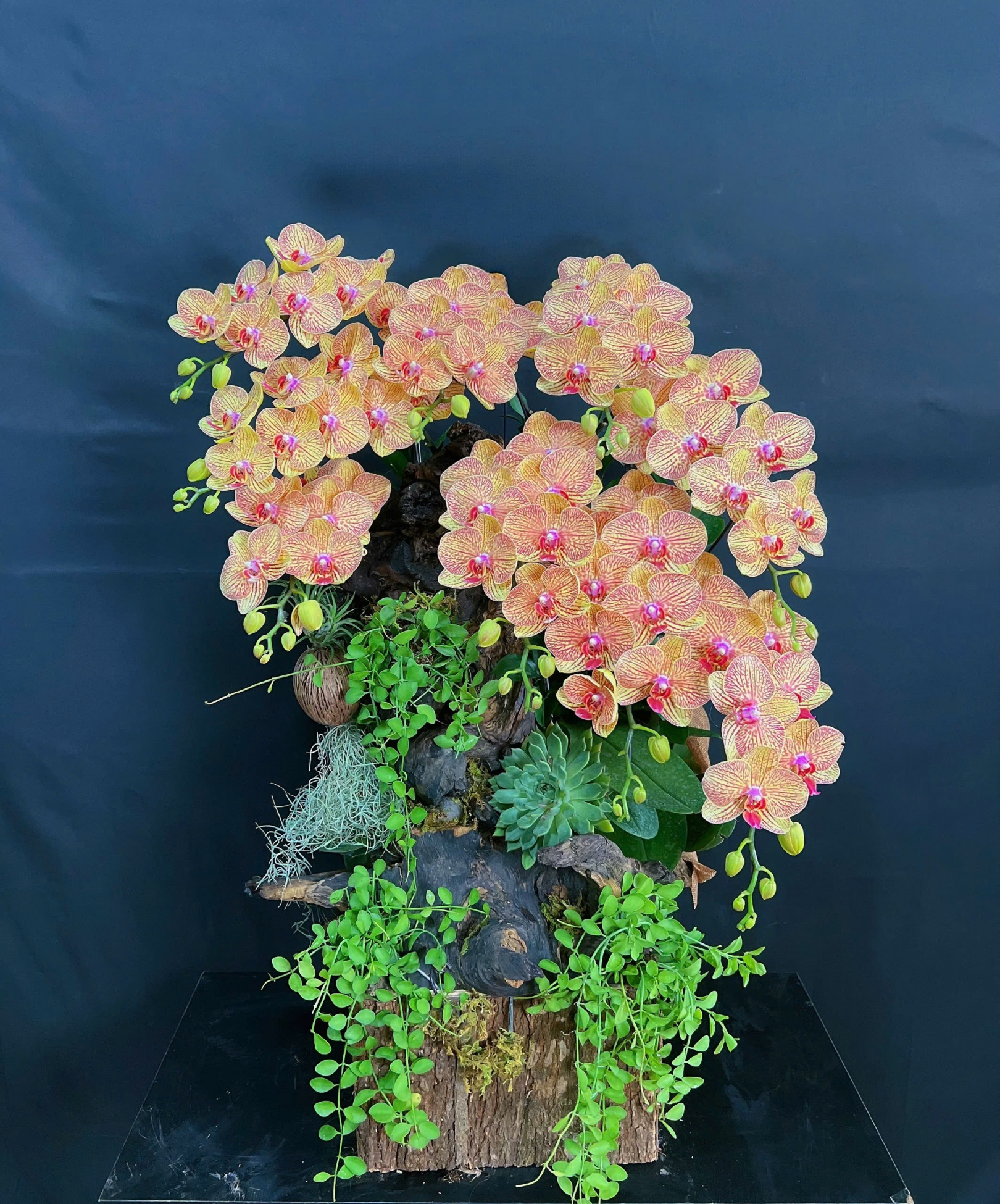 Mỗi nghệ nhân cắm hoa sẽ tạo ra các mẫu hoa khác nhau, không hoàn toàn giống nhau 100% và có độ tùy biến đôi chút, hoalantacpham.com cam kết đảm bảo tầm 90%-95% như mẫu cho quý khách hàng (100% sản phẩm hoa lan từ người dân làng hoa Lâm Đồng)