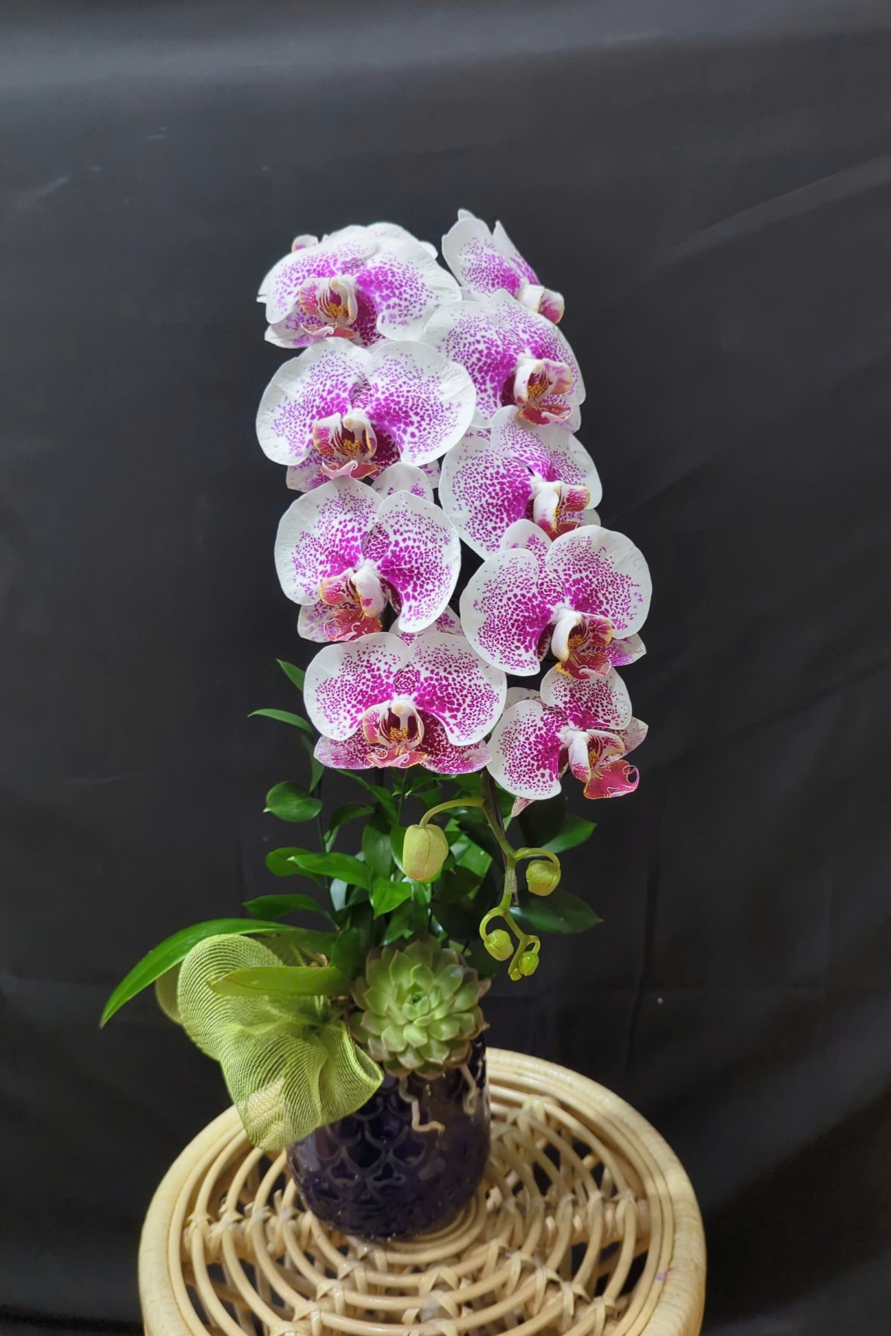 Mỗi nghệ nhân cắm hoa sẽ tạo ra các mẫu hoa khác nhau, không hoàn toàn giống nhau 100% và có độ tùy biến đôi chút, hoalantacpham.com cam kết đảm bảo tầm 90%-95% như mẫu cho quý khách hàng (100% sản phẩm hoa lan từ người dân làng hoa Lâm Đồng)
