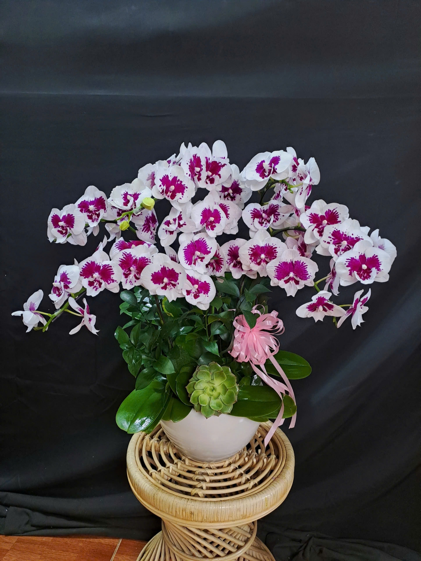 Mỗi nghệ nhân cắm hoa sẽ tạo ra các mẫu hoa khác nhau, không hoàn toàn giống nhau 100% và có độ tùy biến đôi chút, hoalantacpham.com cam kết đảm bảo tầm 90%-95% như mẫu cho quý khách hàng (100% sản phẩm hoa lan từ người dân làng hoa Lâm Đồng).