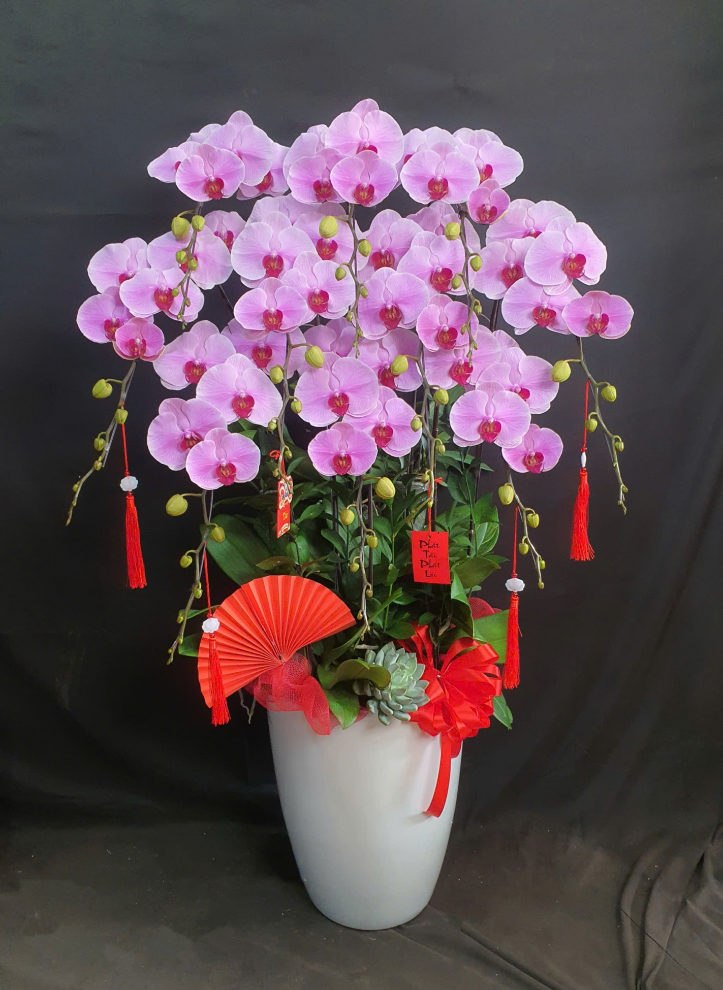 Mỗi nghệ nhân cắm hoa sẽ tạo ra các mẫu hoa khác nhau, không hoàn toàn giống nhau 100% và có độ tùy biến đôi chút, hoalantacpham.com cam kết đảm bảo tầm 90%-95% như mẫu cho quý khách hàng (100% sản phẩm hoa lan từ người dân làng hoa Lâm Đồng)
