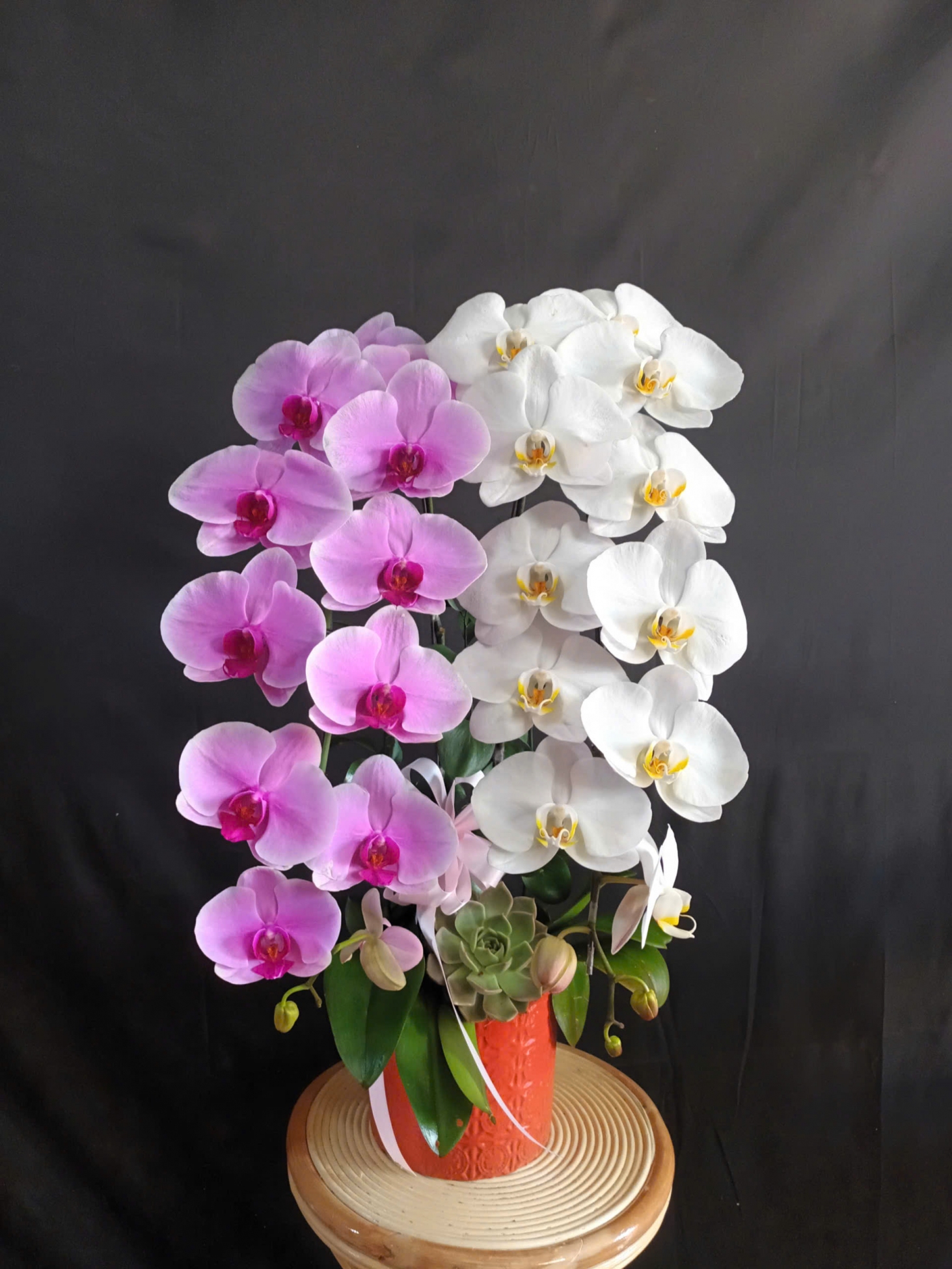 Mỗi nghệ nhân cắm hoa sẽ tạo ra các mẫu hoa khác nhau, không hoàn toàn giống nhau 100% và có độ tùy biến đôi chút, hoalantacpham.com cam kết đảm bảo tầm 90%-95% như mẫu cho quý khách hàng (100% sản phẩm hoa lan từ người dân làng hoa Lâm Đồng).