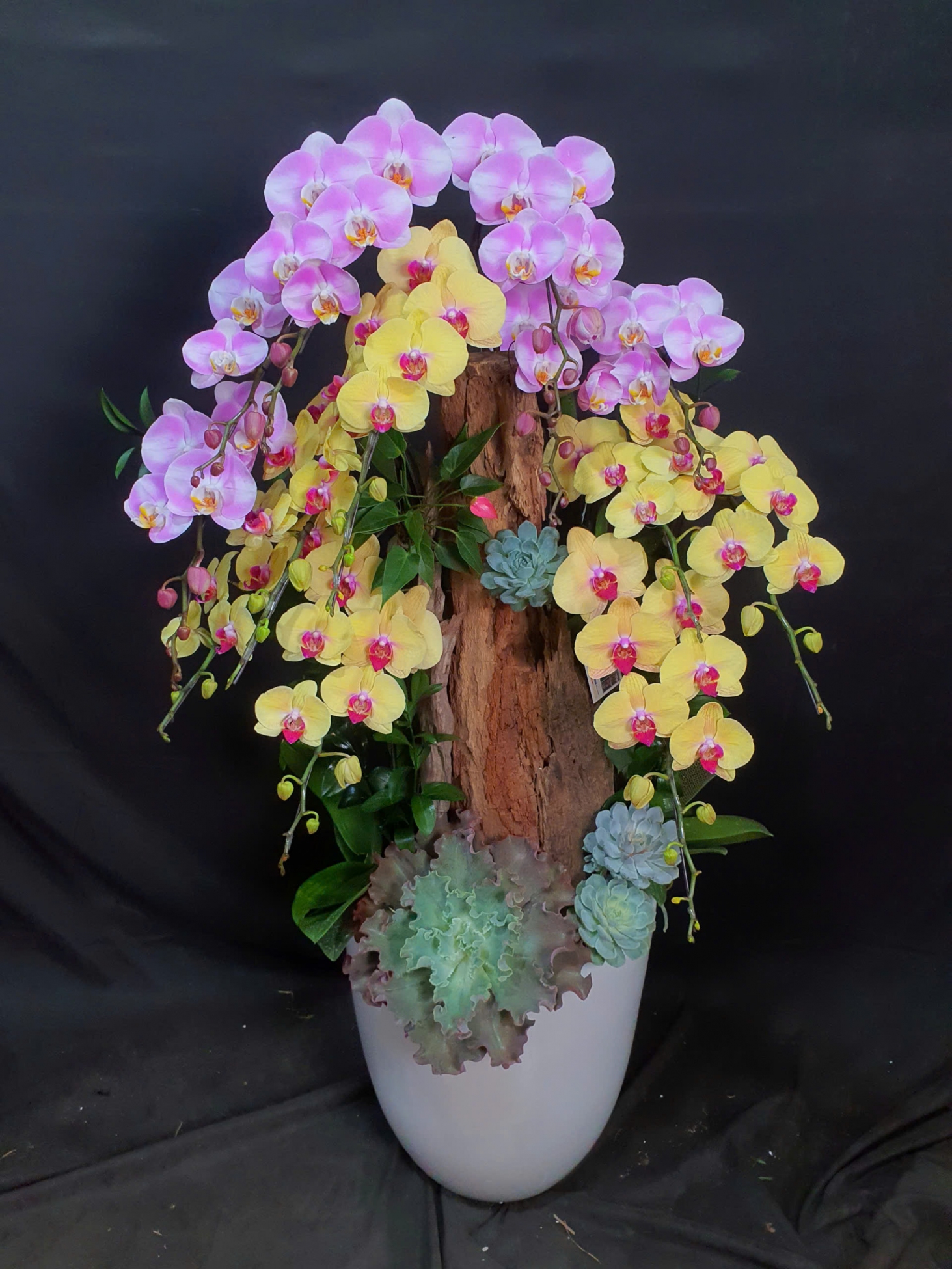 Mỗi nghệ nhân cắm hoa sẽ tạo ra các mẫu hoa khác nhau, không hoàn toàn giống nhau 100% và có độ tùy biến đôi chút, hoalantacpham.com cam kết đảm bảo tầm 90%-95% như mẫu cho quý khách hàng (100% sản phẩm hoa lan từ người dân làng hoa Lâm Đồng)