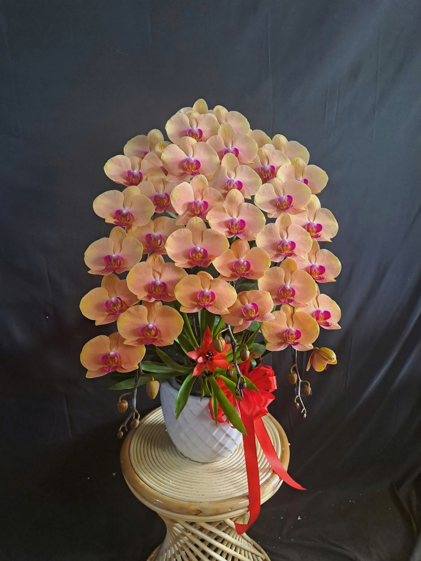 Mỗi nghệ nhân cắm hoa sẽ tạo ra các mẫu hoa khác nhau, không hoàn toàn giống nhau 100% và có độ tùy biến đôi chút, hoalantacpham.com cam kết đảm bảo tầm 90%-95% như mẫu cho quý khách hàng (100% sản phẩm hoa lan từ người dân làng hoa Lâm Đồng).