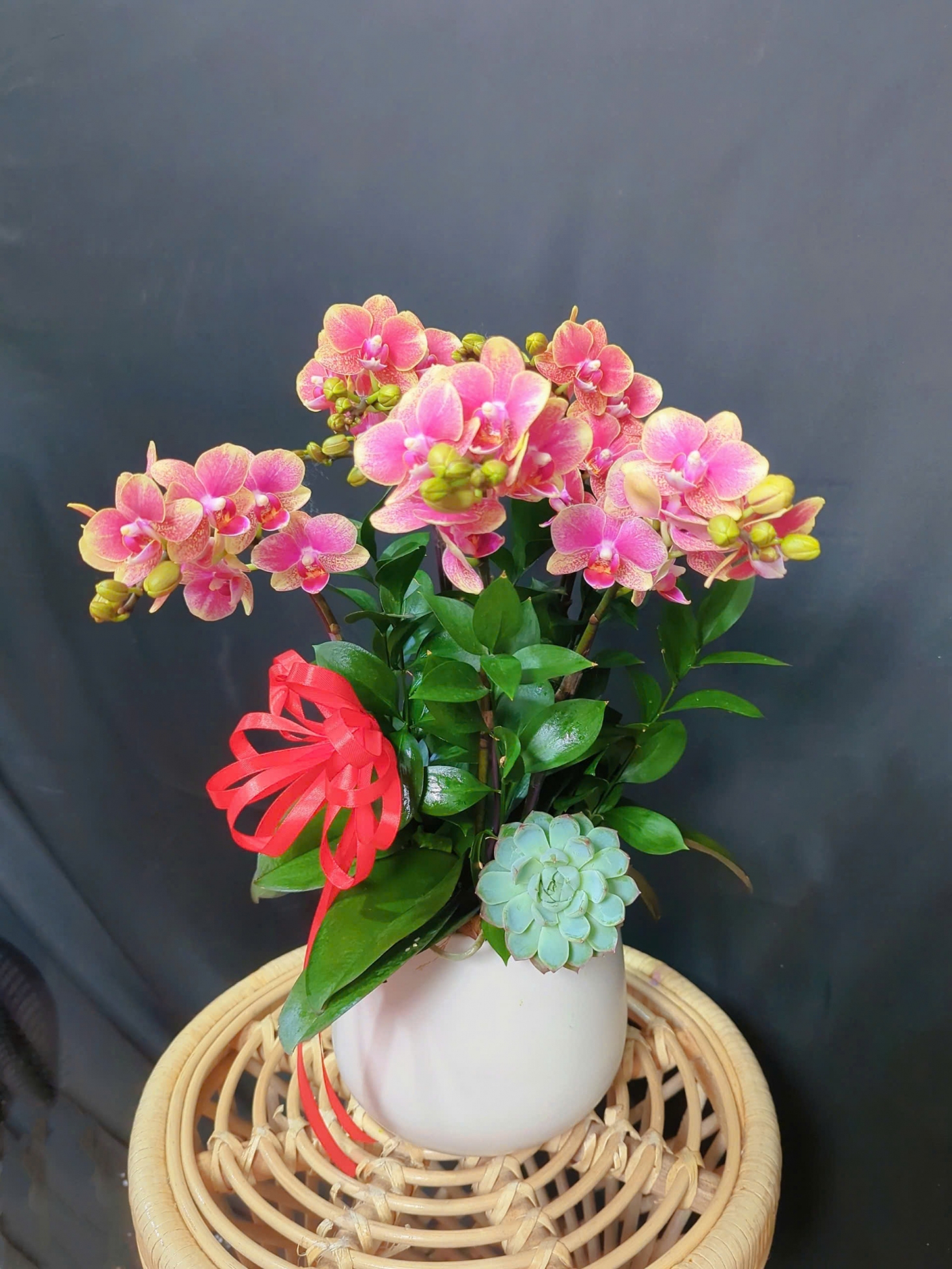 Mỗi nghệ nhân cắm hoa sẽ tạo ra các mẫu hoa khác nhau, không hoàn toàn giống nhau 100% và có độ tùy biến đôi chút, hoalantacpham.com cam kết đảm bảo tầm 90%-95% như mẫu cho quý khách hàng (100% sản phẩm hoa lan từ người dân làng hoa Lâm Đồng)