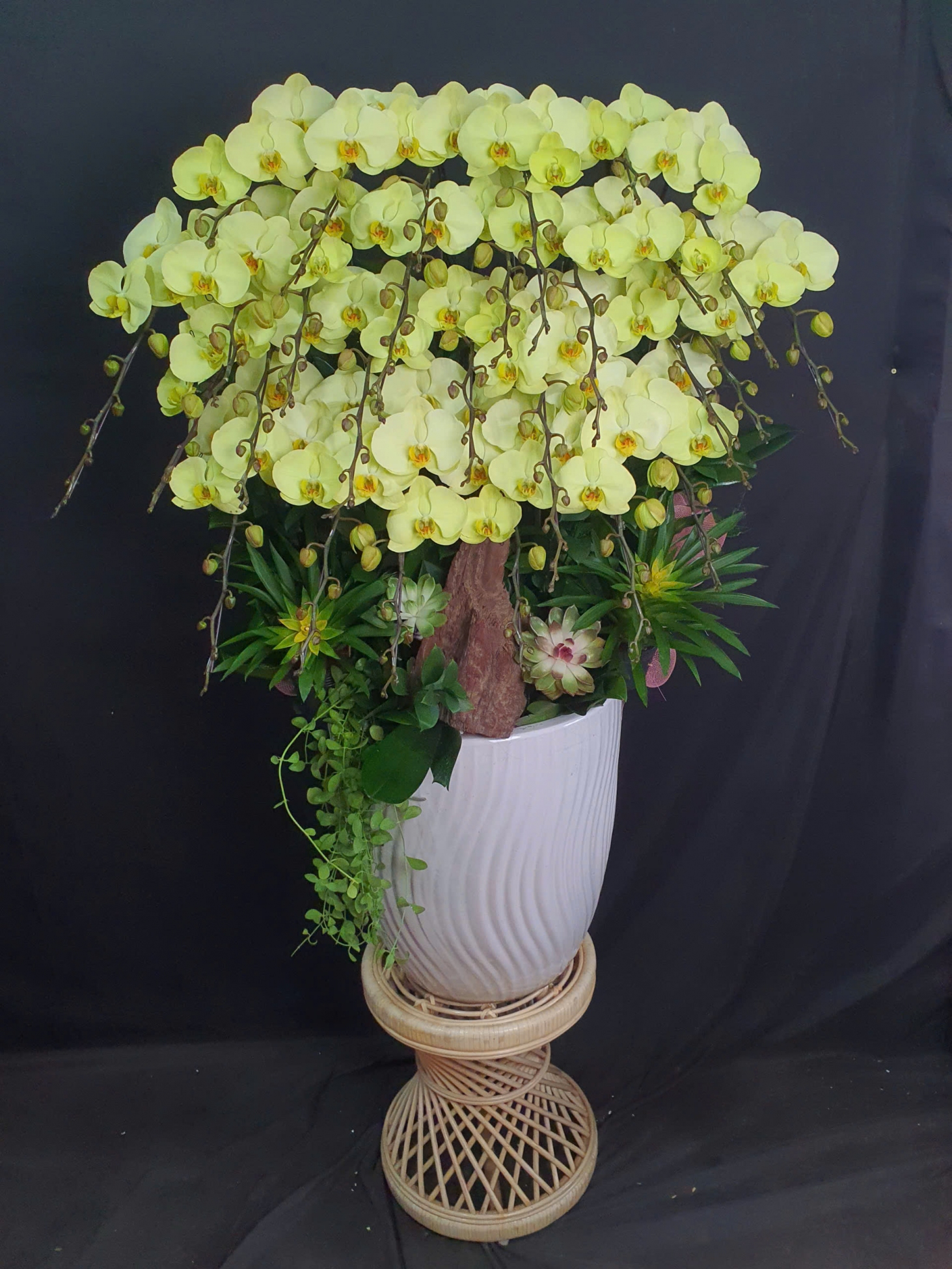 Mỗi nghệ nhân cắm hoa sẽ tạo ra các mẫu hoa khác nhau, không hoàn toàn giống nhau 100% và có độ tùy biến đôi chút, hoalantacpham.com cam kết đảm bảo tầm 90%-95% như mẫu cho quý khách hàng (100% sản phẩm hoa lan từ người dân làng hoa Lâm Đồng)