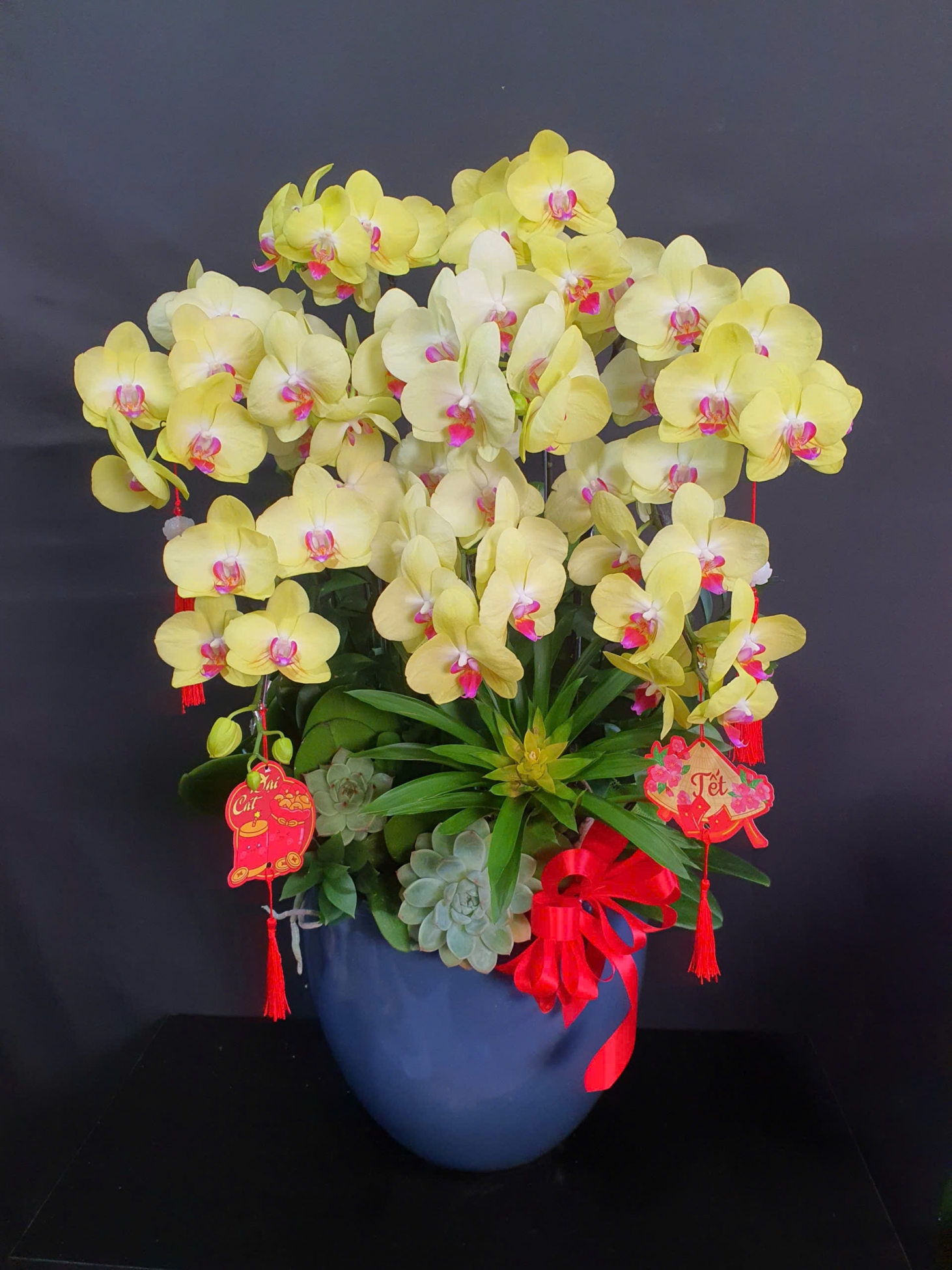 Mỗi nghệ nhân cắm hoa sẽ tạo ra các mẫu hoa khác nhau, không hoàn toàn giống nhau 100% và có độ tùy biến đôi chút, hoalantacpham.com cam kết đảm bảo tầm 90%-95% như mẫu cho quý khách hàng (100% sản phẩm hoa lan từ người dân làng hoa Lâm Đồng)